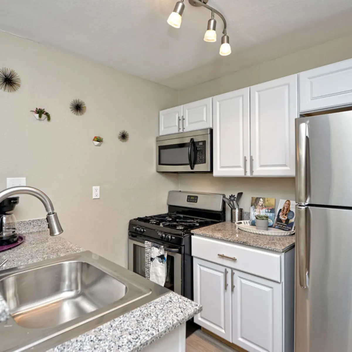 The gated community of Harmon Square Apartments invites you to discover the remodeled one- and two-bedroom apartments available in our pet-friendly community.